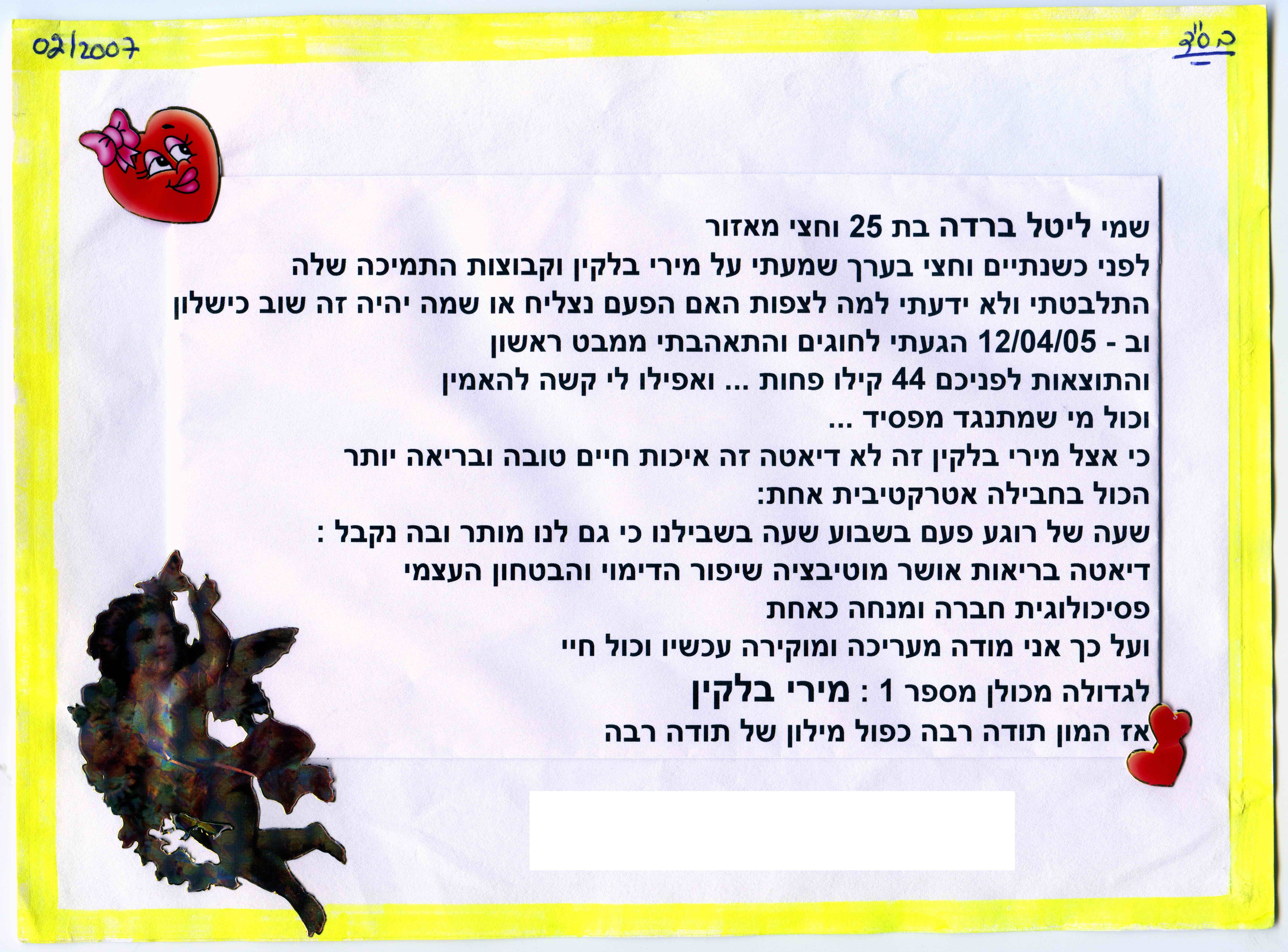 רוצה לרזות? רוצה לשנות את אורח החיים שלך? חדש! מירי בלקין באינטרנט - דיאטה בהתאמה אישית עבורך, מכל מקום ובכל זמן שמתאים לך.